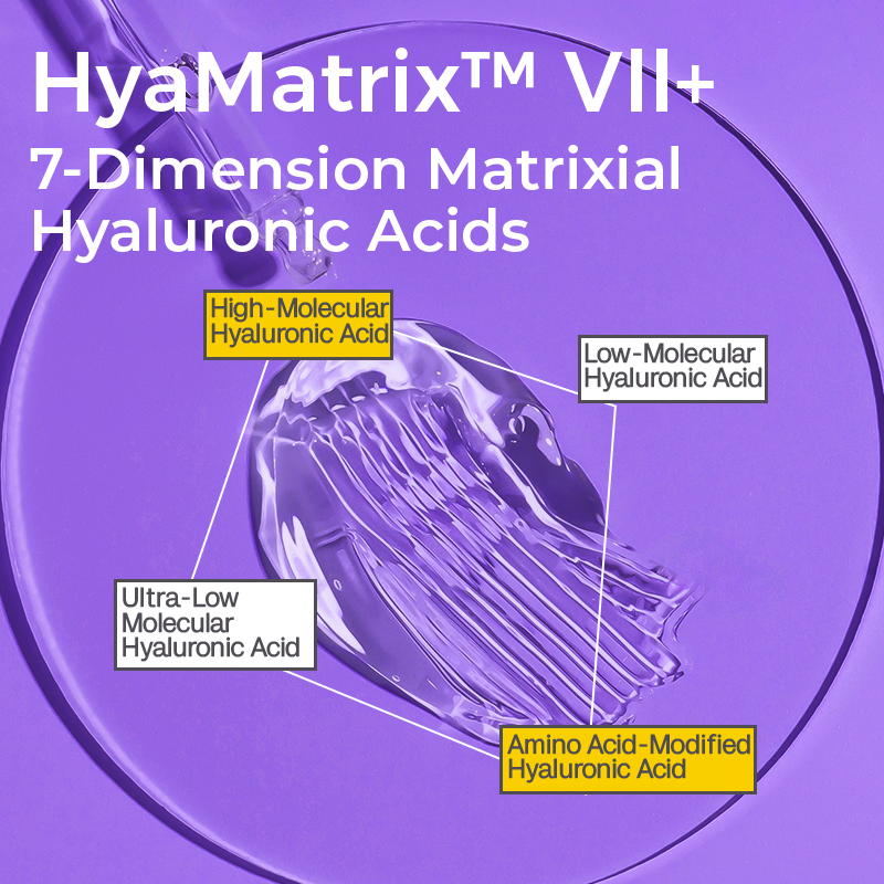 With the addition of a multi-layer hyaluronic acid (HyaMatrixTMVII+) for deep hydration and cell repair, a clinical study of the HyaMatrixM VII+ hyaluronic acid formula